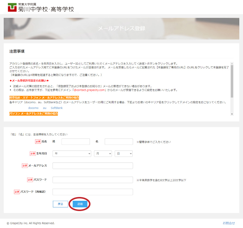 入力内容を確認し、誤りがなければ左下の【上記内容で申込】をクリックします。