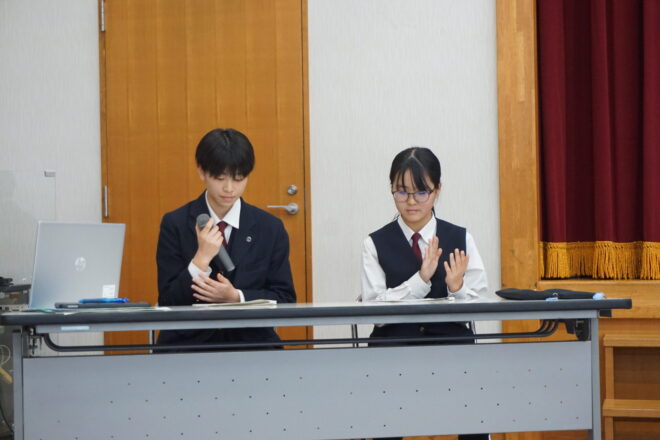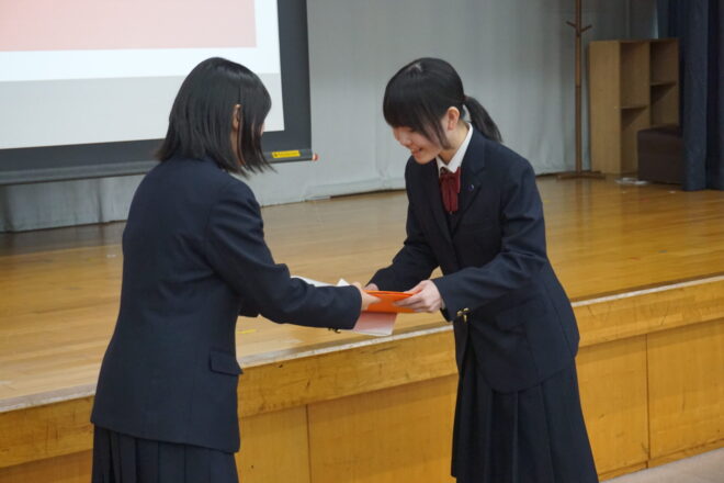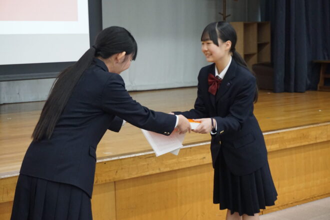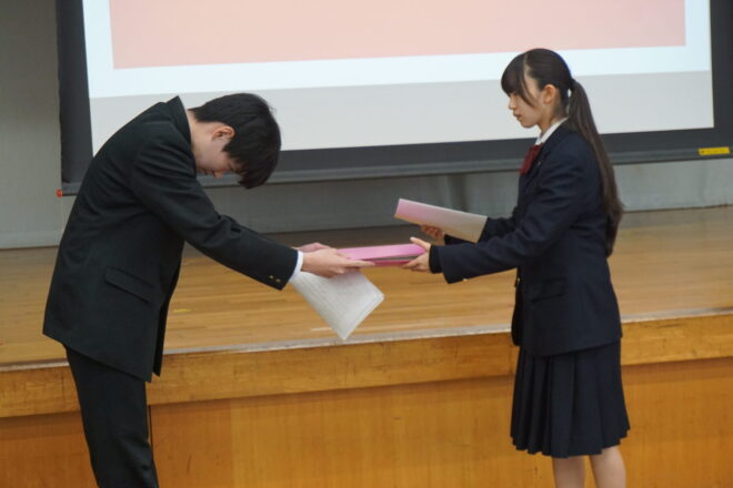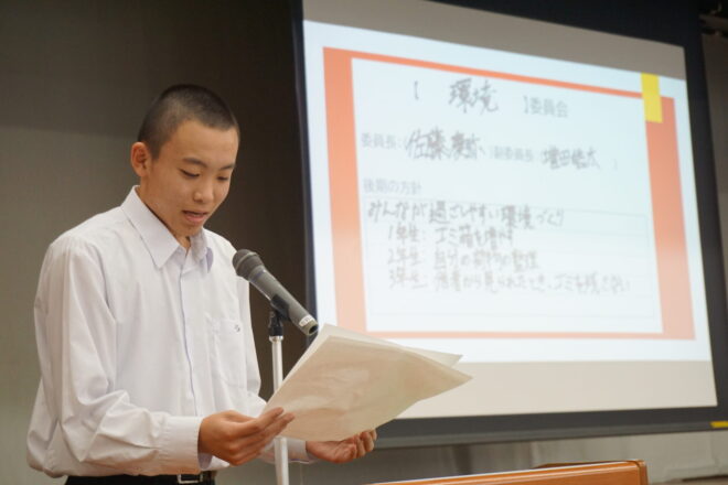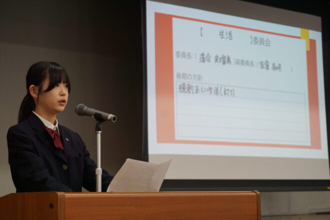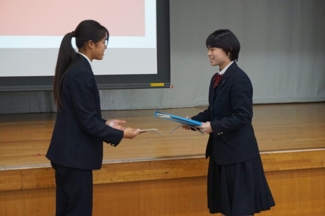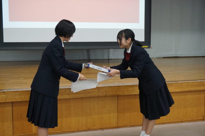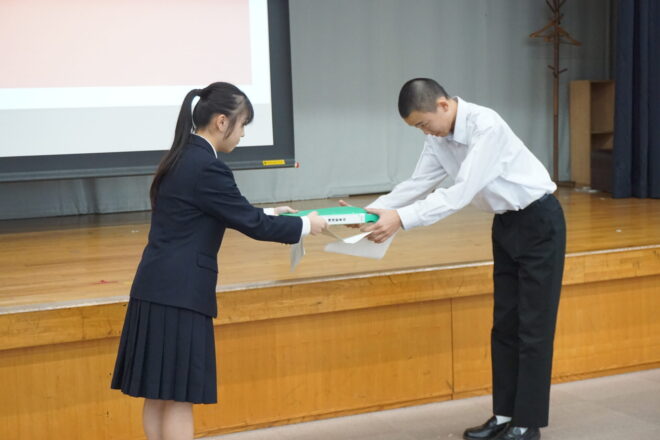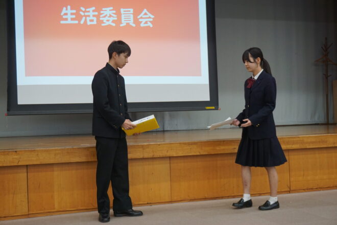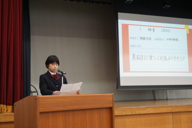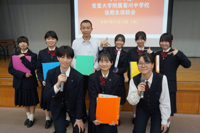 中学 【中学】令和7年度後期生徒総会 2025.11.13 本日、中学の後期生徒総会が行われました。生徒会役員や各委員会の中心が3年生から2年生へ移りました。前期から後期への引継ぎ事項などを確認しながら、後期の目標や活動内容について会長や委員長より方針が示されました。2年生が中心となりますが、全校生徒で協力してよりよい菊中づくりに努めていきます。 中学, トピックス