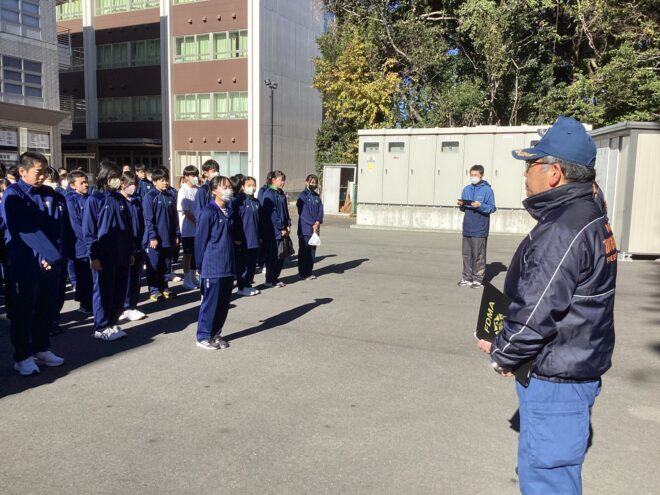 12月4日(木)に中学では防災訓練と生徒会企画による中学の交流会が行われました。防災訓練では、南海トラフ地震に備えての避難訓練や消火・煙・救助袋などの体験を実施しました。有事の際に率先して行動できるような準備をすることができました。また、その後に行われた中学交流会では生徒会が企画・運営を行い、様々なレクリエーションを楽しみました。最後に行われた『菊川流し』では、各グループが一丸となって楽しみながらも競い合いました。2学期も残りわずかとなりましたが、体調管理に気を配りながら有意義な学校生活を送りたいです。