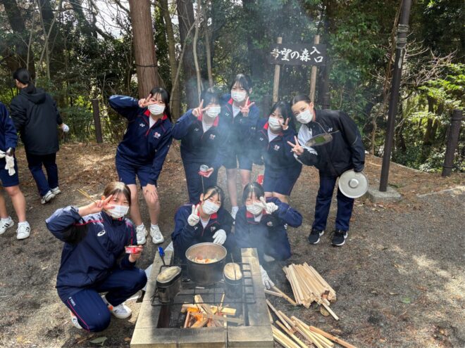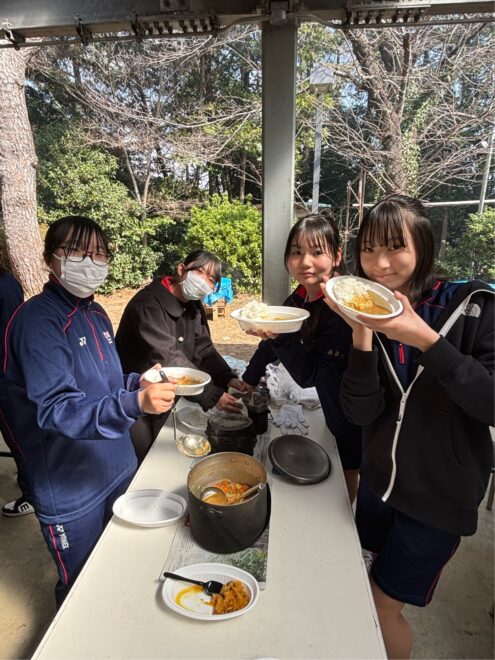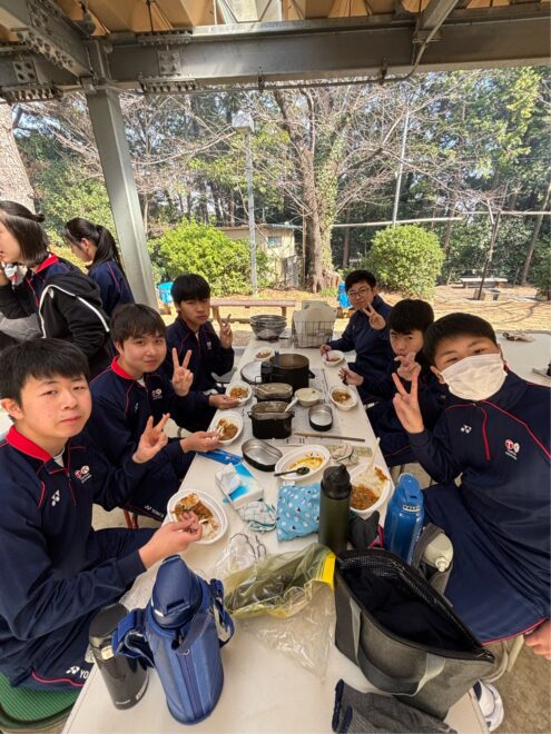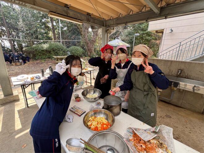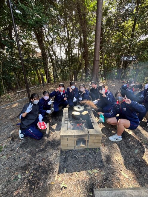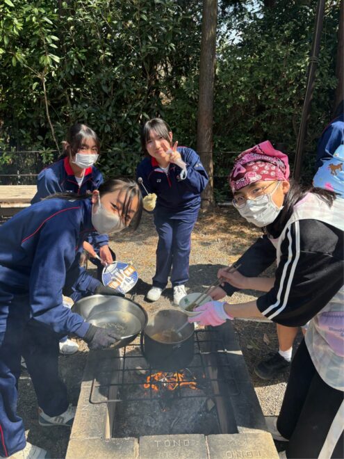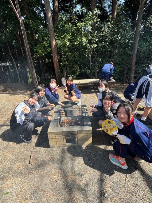 初めての野外活動でしたが、班ごとに協力して火おこしや調理・飯ごう炊飯を行い、家庭科の調理実習とは一味違う体験ができました。