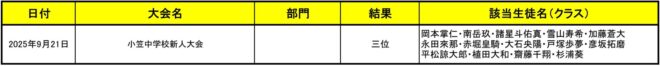 | 令和4年度 小笠地区中学校新人総合体育大会 北部地区予選 | 9月17日・9月18日 | 3位 | 予選リーグ 〃 準決勝 |