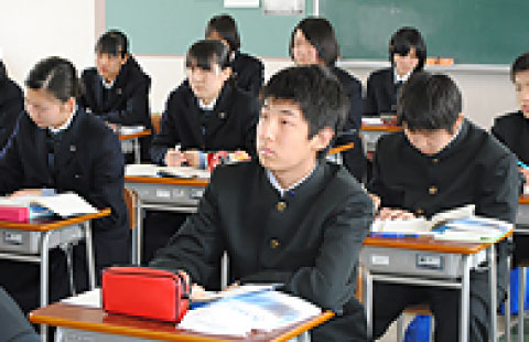 - 基本編成は3クラスです。進級時に成績上位者をまとめ、「選抜クラス」を構成しています。2年次には文系・理系に分かれ、選択科目ごとに授業が行われます。